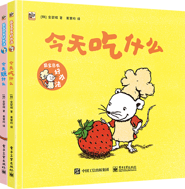 这是一套教会孩子通过创造力和想象力,拒绝无聊,开启无限开心模式的图画书。作者是2019年意大利博洛尼亚获奖插画师金瑟琪。主角是这只可爱的鼠宝。 第一册《今天吃什么》:鼠宝发现了一棵草莓,于是决定做草莓蛋糕吃。可是一不留神面粉倒多了,只能换个锅;锅够大了结果……随着加入的小伙伴越来越多,蛋糕也越做越大,鼠宝和朋友们也越玩越开心。第二册《今天玩什么》:鼠宝发现了一截绳子,正跳绳玩,小鸭子拉着小车过来了。鼠宝刚把两截绳子接一起,小猩猩就来了。鼠宝刚把三截绳子都接到一起,小绵羊又过来了。于是鼠宝继续接绳子,鼠宝和朋友们也越玩越开心。