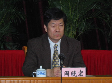 国家版权局阎晓宏副局长宣读总署关于表彰“2004年教材教辅类图书质量专项检查”先进单位的决定