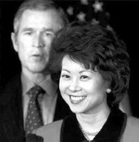 在中美关系上,赵家对一个截然不同的世界的划分持观望态度:父亲赵锡成在北京同中国领导人一起喝茶;女儿赵小兰在华盛顿和中国的对手们一起喝咖啡。大约就是在这个时候,赵小兰遇到了小布什,或者她称呼的“第一公子”。