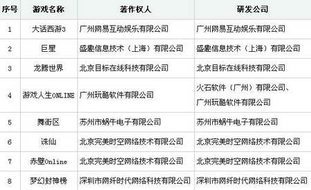 今年1月,总署组织开展了第四批“民族网游工程”项目的申报与论证工作。经由教育部门、团中央、行业协会、专业媒体、出版界等方面的资深代表组成的专家论证委员会,对55家企业申报的75款原创网络游戏选题进行了充分评议,确定《大话西游3》等25款网络游戏作为第四批项目入选“民族网游工程”,现予公布。
