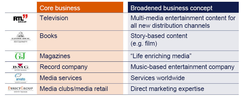 在此背景下,贝塔斯曼BMG音乐产业和直接集团不得不出售和革新。RTL集团则继续推行其三大支柱战略:扩展家庭频道、进一步多样化收入来源、扩大到高增长区域。RTL集团利用各种渠道和平台发展数字电视频道、包括在线服务,视频和点播,网络电视和移动TV、甚至于数字影院。业务在荷兰和俄罗斯等地拓展,满足更多的内容需求,并积极探索更好的数字技术。