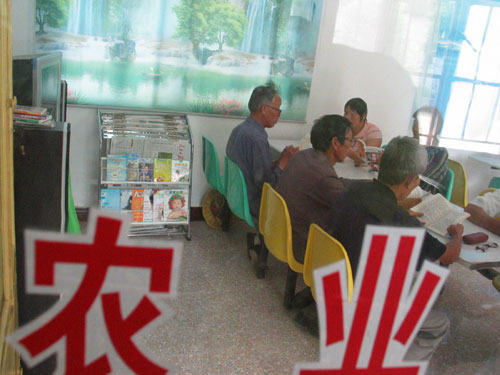东海县立埝乡,书屋图书管理员是名退休教师,他执鞭31年,如今已经71岁了,他没想到在退休10年之后还能发挥余热,成为图书管理员他认为是个光荣。他告诉记者,来这里看书的农民大多数是需求农业养殖致富类的书籍。他说起事例来如数家珍。村里的谁在这里通过读专业养殖书籍,把自己的养猪产业搞的红红火火,一年下来赚了多少钱;又是谁说要养鸡,但是不识字,可还是在这里借走了一套书,让别人读了说给他听,没多久,居然建起了养鸡场。他说看到村民们能够通过他管理的农家书屋获得精神和经济上的收获,他就有说不出的喜悦。