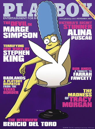 据美国《世界日报》报道,继玛丽莲.梦露、辛迪.克劳馥、猫头鹰餐馆(Hooters)性感女侍等各界美女之后,卡通电视剧《辛普森家庭》里的妈妈玛吉(Marge)首开半个多世纪来的纪录,成为第一个登上《花花公子》杂志封面的卡通人物。