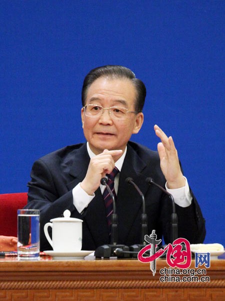 十一届全国人大四次会议闭幕后,国务院总理温家宝在人民大会堂金色大厅与采访十一届全国人大四次会议的中外记者见面,并回答了记者的提问。在两个半小时的时间里,温家宝共回答了12位中外记者的问题,就中国的改革、民生、反腐等话题进行了深入解读。其中,在回答韩国文化广播公司记者的提问时,谈及文化建设和文化体制改革。