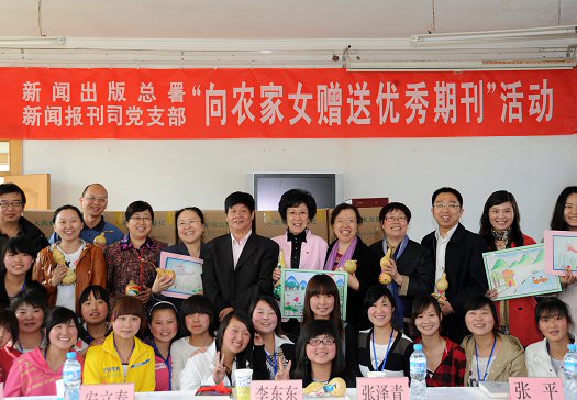 4月27日,新闻出版总署新闻报刊司党支部赴北京昌平农家女实用技能培训学校,向农家女赠送100多种、6000余册优秀社科类期刊,新闻出版总署副署长李东东出席赠刊仪式并参加与农家女学校举办的座谈会。