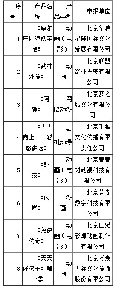 2013年2月27日,文化部印发了《关于做好2013年动漫企业认定有关工作的通知》(文产函〔2013〕240号),启动了2013年动漫企业认定申报工作。根据《动漫企业认定管理办法(试行)》的有关规定,经过省级动漫企业认定管理机构初审推荐、全国动漫企业认定管理工作办公室复核、专家评审等环节,初步确定了2013年拟通过认定的重点动漫产品名单。