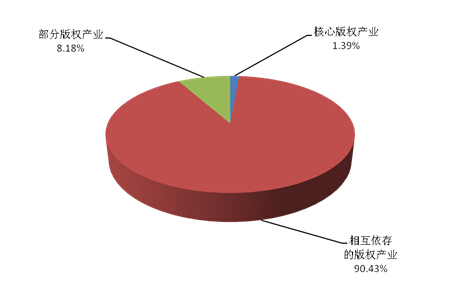 按照世界知识产权组织的分类,版权产业分为核心版权产业、相互依存的版权产业、部分版权产业及非专用支持产业四个产业组。