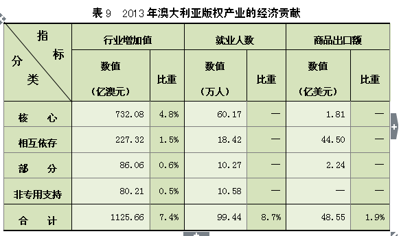 2.2013年澳大利亚版权产业的经济贡献