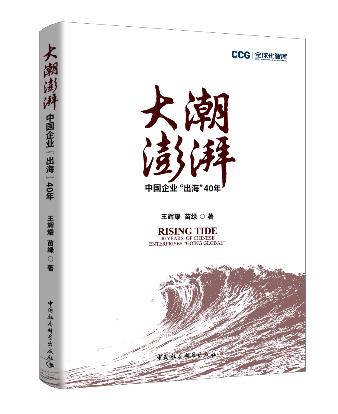 《大潮澎湃:中国企业“出海”四十年》由CCG主任王辉耀博士及CCG副主任兼秘书长苗绿博士著,中国社会科学出版社出版。该书回顾总结了中国企业40年全球化征程,指出十大“出海”路径,并根据企业全球化道路上的挑战提出相应建议。该书的发布旨在为“走出去”事业献计献策,为中国企业全球化贡献更大力量,对中国企业全球化未来发展具有重要意义。图书共分为上、中、下三篇。其中,上篇分为4个部分,分别回顾总结了中国企业在改革开放四十年中“走出去”的4个历史阶段,即1978至1991年,国门陡开:中国企业睁眼看世界;1992至2000年,探索徘徊:中国企业崭露头角;2001至2007年,风云际会:中国企业鏖战全球;2008年至今,重塑版图:中国企业引领全球化新征程。在中篇中,该书指出了中国企业全球化的10大路径:安营扎寨;借鸡生蛋;借船出海;海外战略资源获取;海外产业园区;互联网模式复制海外;农村包围城市;星火燎原;对外承包工程与劳务合作;海外战略股权投资。最后,该书在下篇中根据中国企业在全球化之路上面临的人才难题、风险挑战、文化碰撞、品牌之殇、合规经营以及社会责任六个方面的挑战与困难提出了相应对策与建议。
