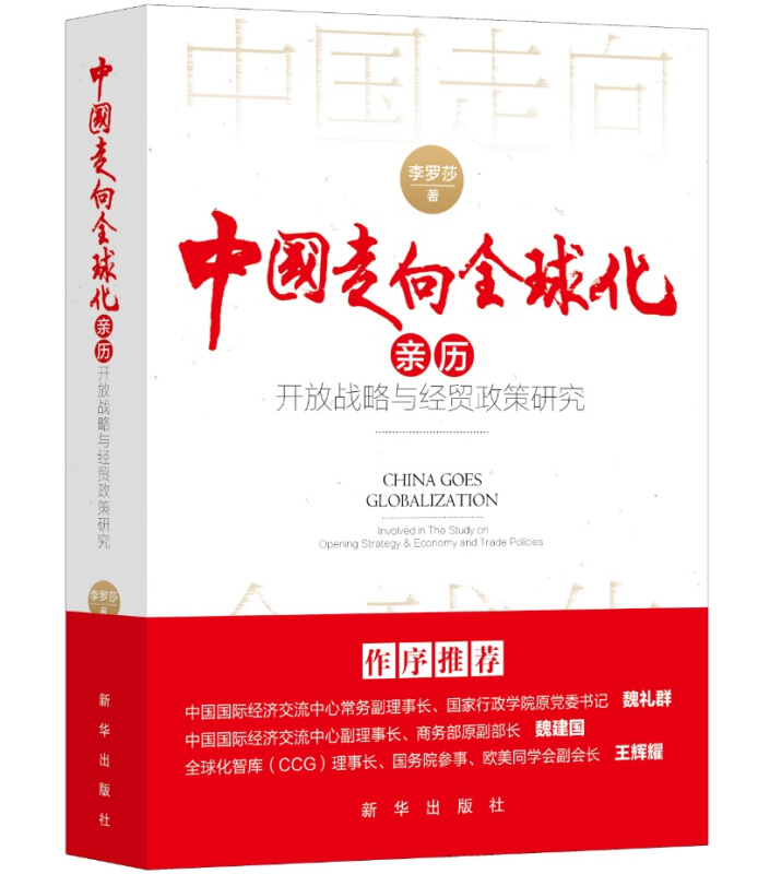 《中国走向全球化——亲历开放战略与经贸政策研究》由CCG高级研究员、商务部前副司长、中国国际经济交流中心前研究员李罗莎著,新华出版社出版。图书集结了从1998年至2016年间,李罗莎女士亲历参与的与国家对外开放重大战略和经贸政策研究相关的成果,不仅实录了中国对外开放的若干重大战略研究,也论述了中国经贸的具体政策举措。该书对于加快构建对外开放新格局和开放型经济新体制可以发挥一定的积极作用,更可以为当前的中美贸易摩擦、中国参与区域经济一体化、中国参与全球治理等提供宝贵的借鉴意义和现实启示。全书共分为上、中、下三篇。上篇共有三章,分别为:关于中国入世影响及应对研究,关于中国反倾销及WTO争端解决第一案研究以及关于中国钢铁产业参加OECD钢铁协定谈判研究。中篇共有五章,分别为:关于中美经济关系研究,关于TPP问题研究,中国与区域经济一体化的研究,中国参与全球治理研究及中国企业“走出去”战略研究。下篇共有两章,主要是李罗莎女士的其他研究文章,包括对兰德公司的研究,中国“市场经济地位”问题的研究,引进海外高端人才政策建议以及题为《反倾销效应研究》的论文等。