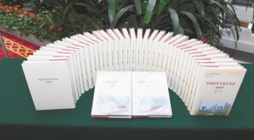 中央卷封面上印制的象征统一团结的天安门城楼、安徽卷上印制的彰显改革开放精神的小岗村、贵州卷上印制的举世闻名的“中国天眼”……12月14日在京举行的出版座谈会上,当一套32卷、900余万字的“中国改革开放全景录”丛书在现场一字排开时,在场所有为这套丛书编辑出版付出心血的人都满怀激动。出版座谈会后,与会代表纷纷站到会标的背板前合影留念。