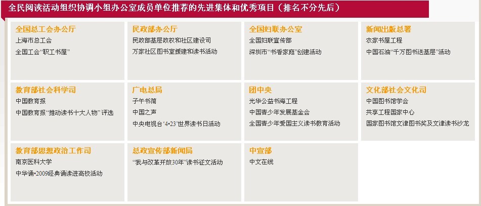 全民阅读活动组织协调小组办公室成员单位推荐的先进集体和优秀项目