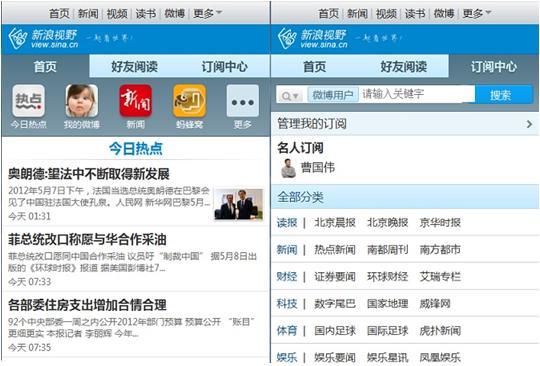 近日,新浪在发布iPad社会化阅读应用“新浪视野”之后,转而推出了新浪视野V1.0.0 Wap版和V1.0.0 Web版。这是两个专门针对移动端和PC端浏览器的信息聚合网站,和iPad应用的移动客户端共同构建一个完整的、跨平台的用户使用体验。