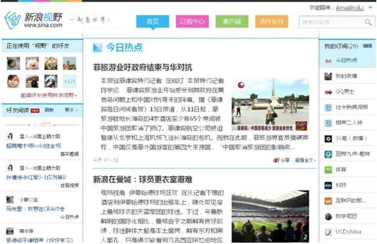 和之前的iPad应用相比,新浪视野本次进行了重大改版,用户的“微博好友关系”被提升到了一个非常重要的位置——将其作为文章推荐的关键因素。和Facebook的Social Reader类似,新浪视野根据互粉好友的阅读内容,将其相关好友阅读的文章推荐给用户。用户可以在“好友阅读”模块看到你的好友都在阅读什么,通过好友来筛选用户感兴趣的信息。这样不仅能提高相关性,还能促进人与人之间的交流。