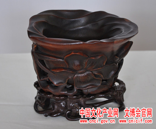 明 犀角雕玉兰大杯