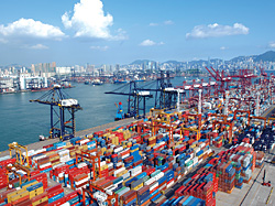 2005年,香港港口合共处理了2260万个20长的标准货柜单位,是全球第二大货柜港。座落于葵涌和青衣的九个货柜码头,分别由五家营运商负责管理,总面积达270公顷,共设有24个泊位,临海地界总长8530米。葵涌 - 青衣港池水深达15.5米,九个货柜码头每年可合共处理逾1800 万个20长的标准货柜单位。在2005年抵港的远洋轮船及内河商船分别约有39140艘次和192680艘次,共处理货物2.301亿公吨和运载旅客2150万人次。