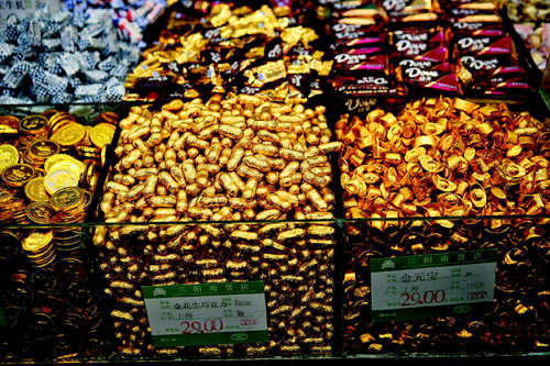 逢年过节,更加是隆重其事。这两天,拣个早,上班前开车把姆妈捎到南京东路,南瓜子、苏式话梅、花生牛轧糖、大白兔奶糖总归先要称上一点的,看到散装的金币巧克力,也还是称个半斤,晓得小辈现在看到巧克力大多数退避三舍,偶尔吃吃也一定要挑进口牌子,只为摆在台面上茶几上,总归好看的,金灿灿,年头里讨个喜。