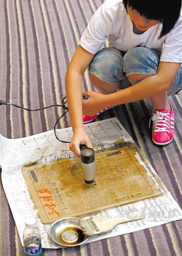 在连续4个小时的比赛中,从6岁到16岁的选手们扮演着多重角色,既当手抄报文章的作者,又当报纸的责任编辑,还当报纸版式设计的美编。这些天真无邪的“小主编”们发挥大胆的创意,版面设计匠心独具,报纸特效独出心裁。比如,来自东莞石排中学的邓嘉欣为了绘制一份有历史感的“旧报纸”,用陈醋精心炮制,自带吹风机到现场烘干,还用刀割出不同的层次,使特效更显独特;而广州二中初三女生毕咏琳,则用毛笔书写报纸,报头为“墨读人生”。她说,想通过书法与墨向古人致敬,用墨来抄报,更有书香气息;一位来自澳门的参赛选手更是有趣,在报纸的右下角还刊登了一则海鲜酒楼的广告。