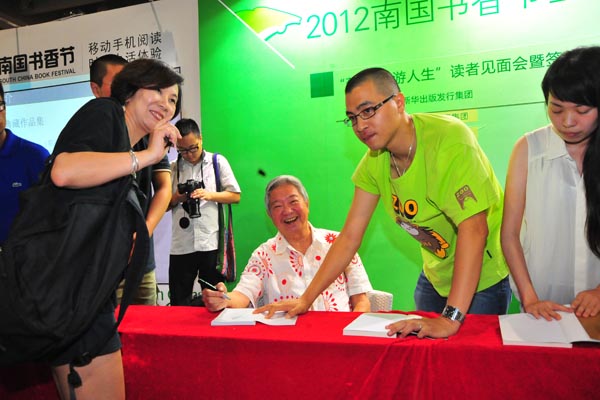 8月19日,香港著名电影人、作家、美食家蔡澜携新书《乐游人生》、《读行天下》、《蔡澜日本四书》在南国书香节上与读者见面。今年72岁的蔡澜风趣幽默,在现场分享了他的人生哲学、幸福感悟。