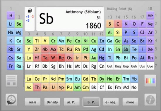 《The Chemical Touch》是一款化学元素周期表的手机应用。这款App把化学元素周期表搬到了手机屏幕上,它允许你通过点击希望了解的元素触发显示该元素的详细属性,同时还可以通过颜色排序来为你呈现化学元素的周期性趋势。