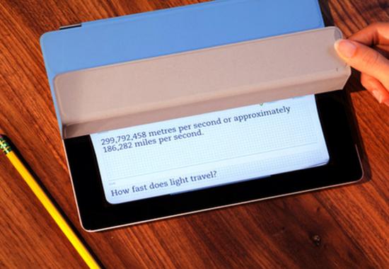 使用《Evernote Peek》要求你的iPad必须配备了Smart Cover皮套。当你掀起Smart Cover的一角,你只能看到屏幕上现实的笔记的标题(即问题),具体的内容(即答案)需要你自己回想。然后继续掀开Smart Cover,笔记内容会完整地显示出来,你便可以将记忆和答案进行对照了。