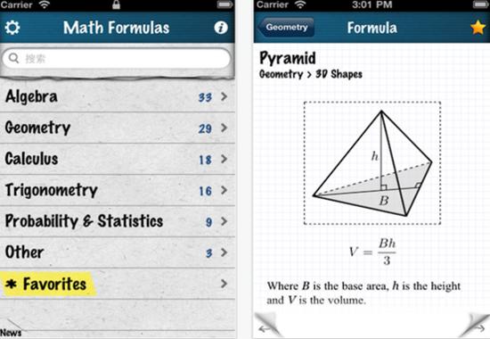 《Math Formulas》是一款让你从繁杂的数学公式中解脱出来的手机应用。不用冥思苦想、不用一页一页翻教科书,用手指简单点几下,你就能找到你要用到的数学公式。