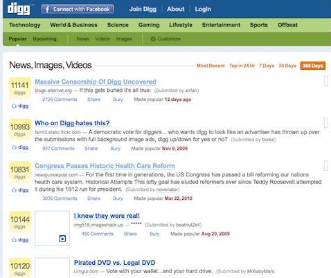 Digg 的模式看上去很美好,但用户的质量决定了其最受欢迎的文章的质量。许多人很快发现了这一系统的不足,大量用户开始聚集起来,开始出于质量之外的原因推广某些链接。这让其原本设计的、浮现出最优质内容的目的受到严重威胁,虽然后来多次改版,但 Digg 始终无法摆脱这一魔咒,最后被多次拆分出售。此外,这一模式本身具有某种堆雪球的效应,来自于知名人士和来源的文章更容易获得大众的追捧,而对于一位只是偶尔贡献内容的默默无闻的人来说,Digg 是难以让其内容真正获得更多人关注的。当然,Reddit、HackerNews 在这方面由于社区氛围的优势让其这一问题并不明显,但也有不少抱怨其上热门内容单一的声音。